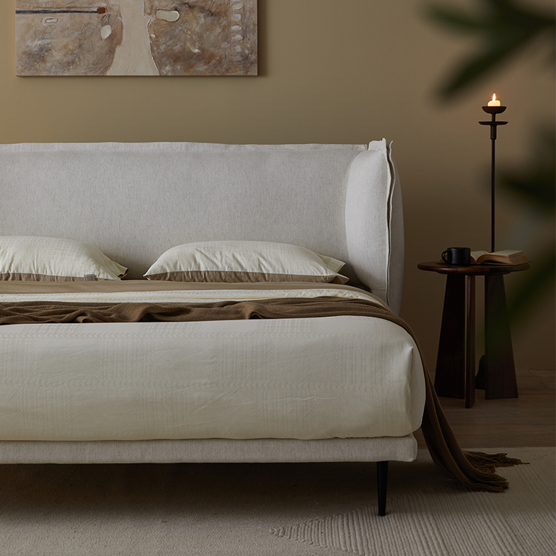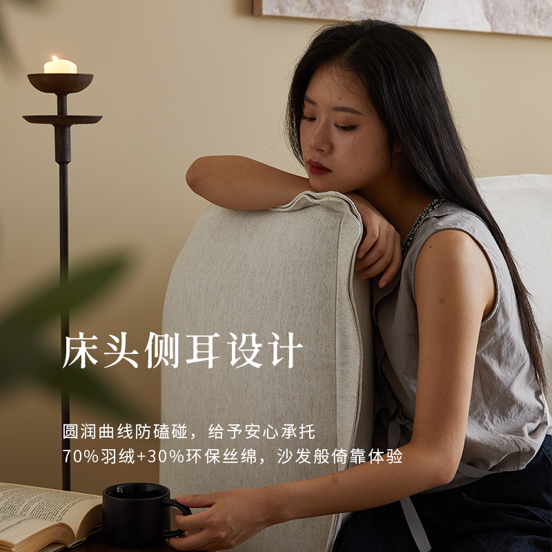 支吾屏扇布艺床棉麻实木现代简约轻奢双人床主卧排骨架软靠新款