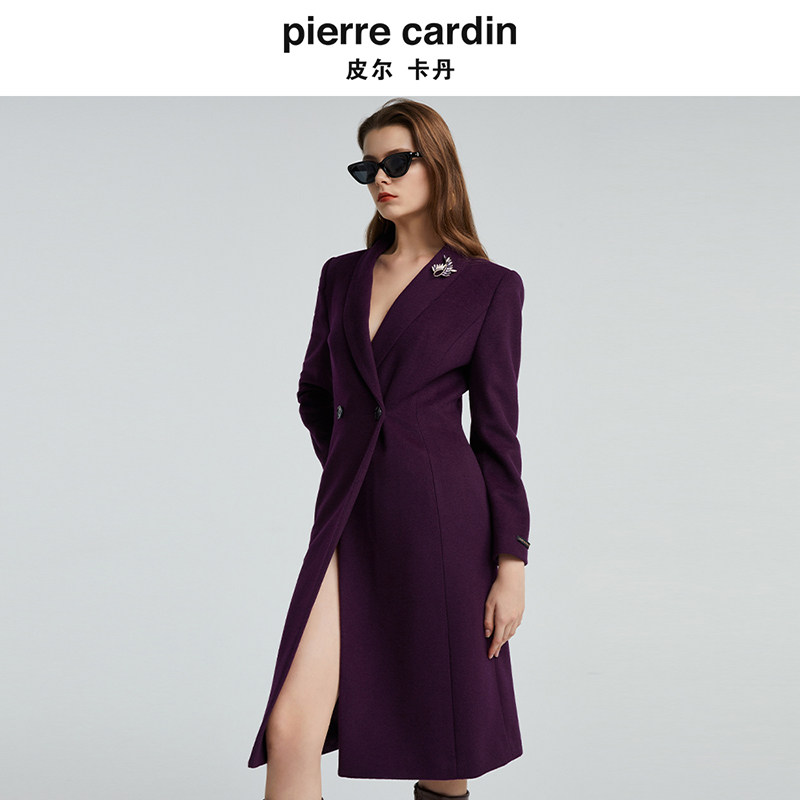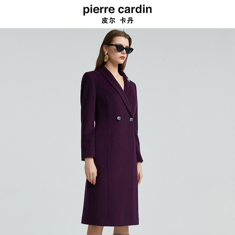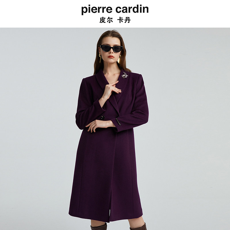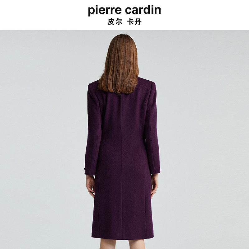 皮尔卡丹女装冬季新款紫色羊毛含桑蚕丝气质毛呢大衣P4452C4989Z0