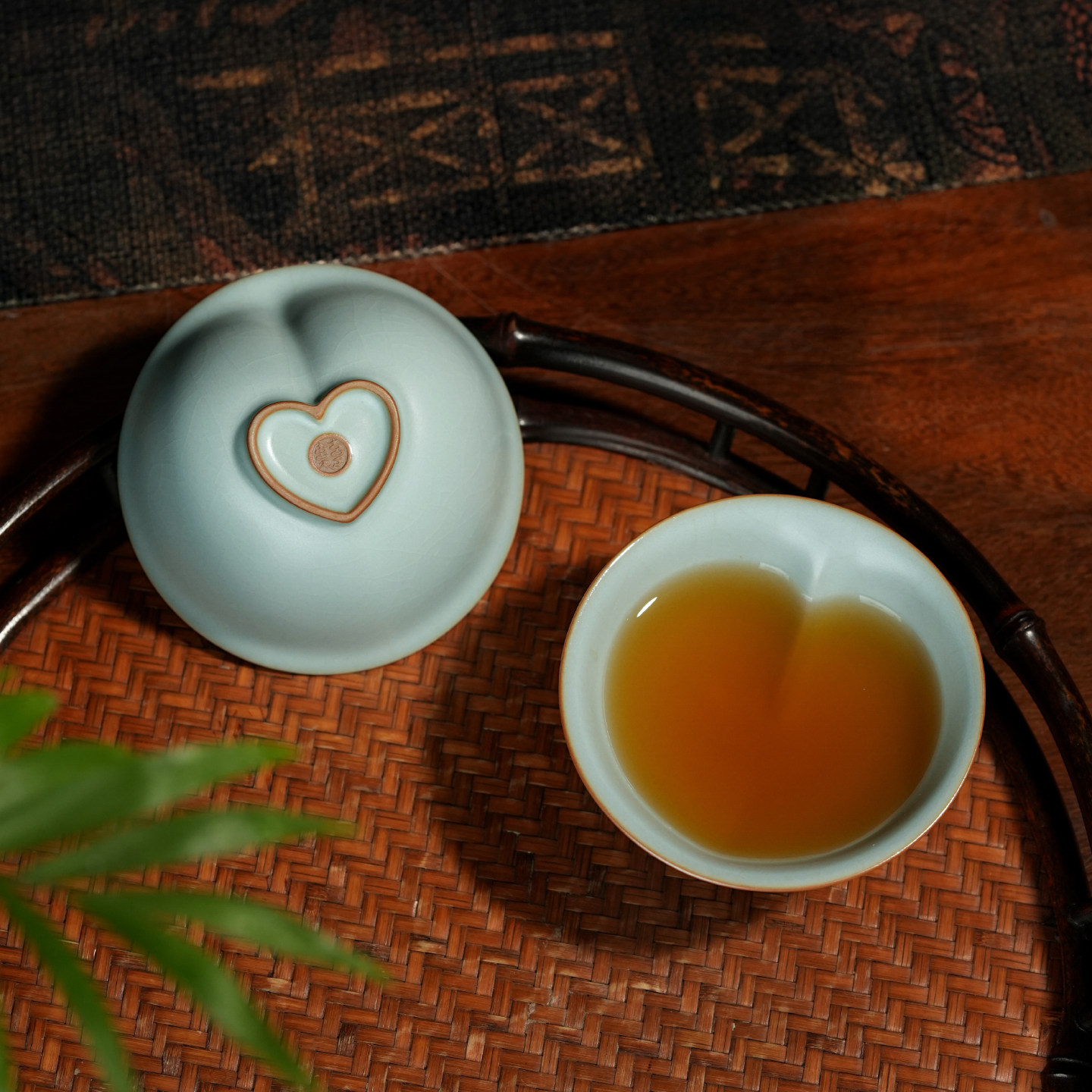 汝窑功夫茶杯主人杯陶瓷景德镇青瓷品茗杯开片汝瓷官窑茶具爱心杯