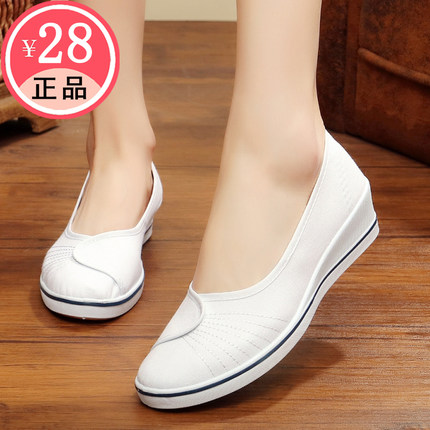 正品老北京布鞋女鞋一字护士鞋白色坡跟工作鞋软牛筋底透气美容鞋