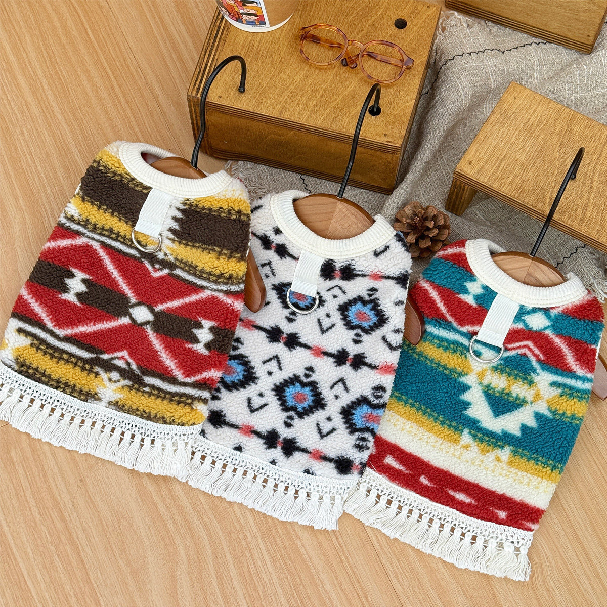 狗狗衣服秋冬装民族风圆领毛衣背心猫咪泰迪比熊可牵引小型犬服饰