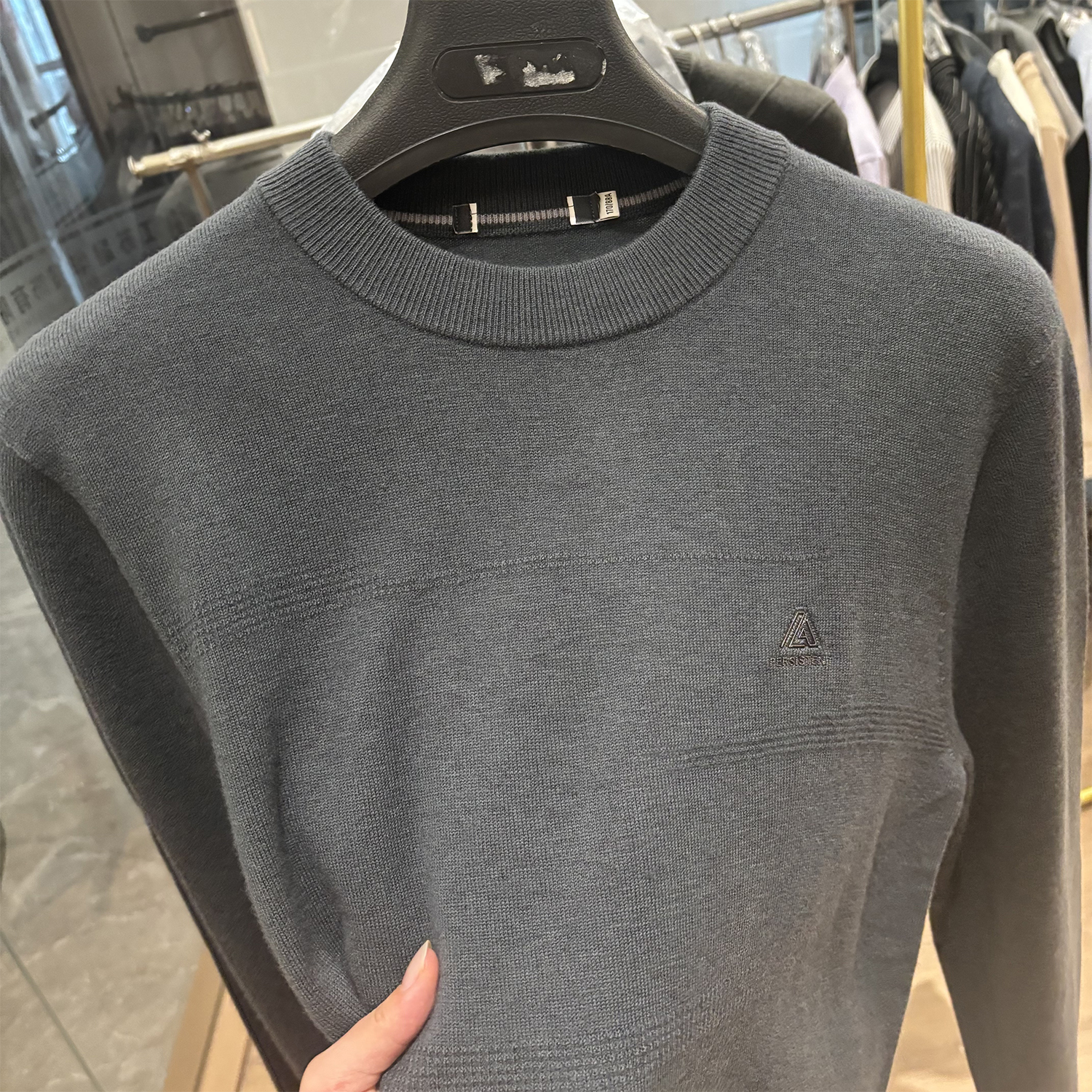 【H家】100绵羊毛!秋季新款男士商务休闲刺绣提花圆领针织衫毛衣