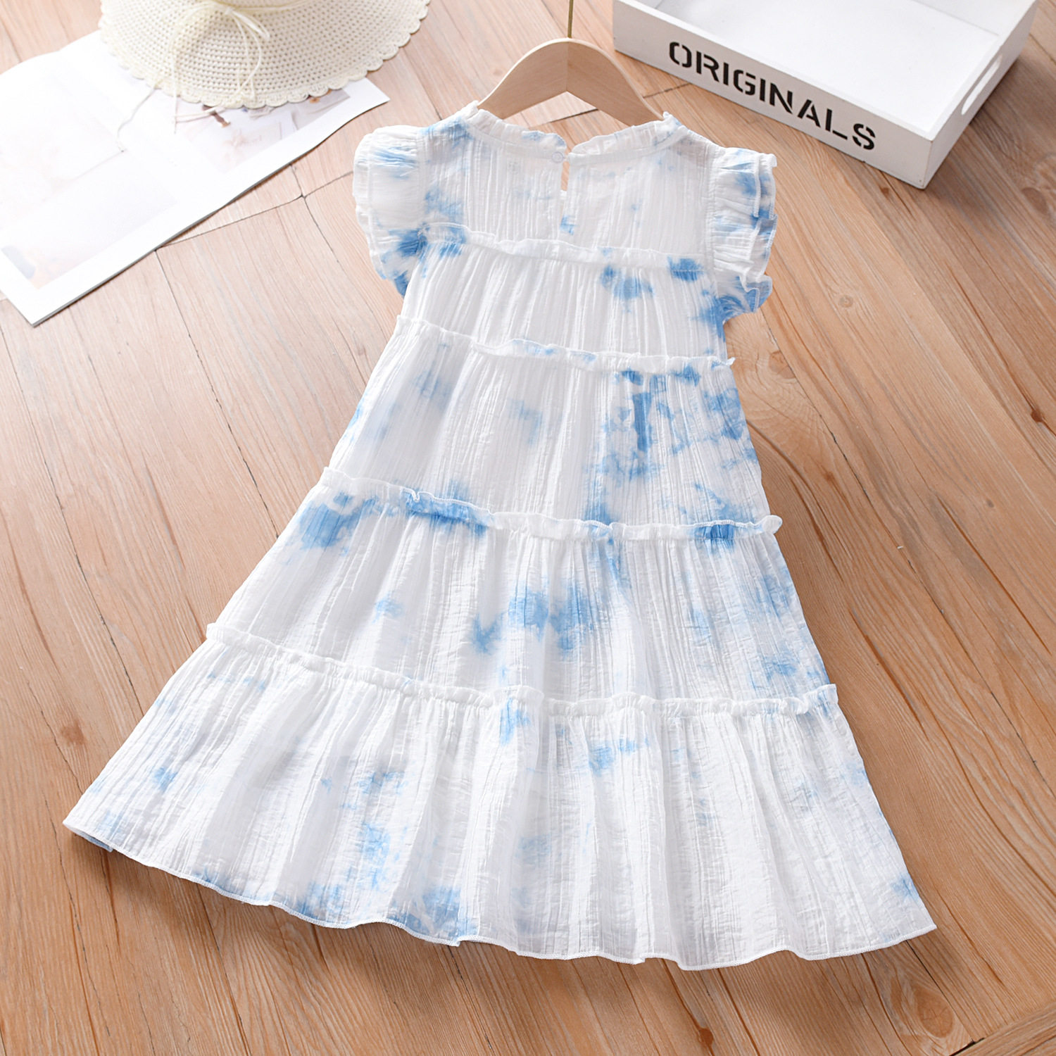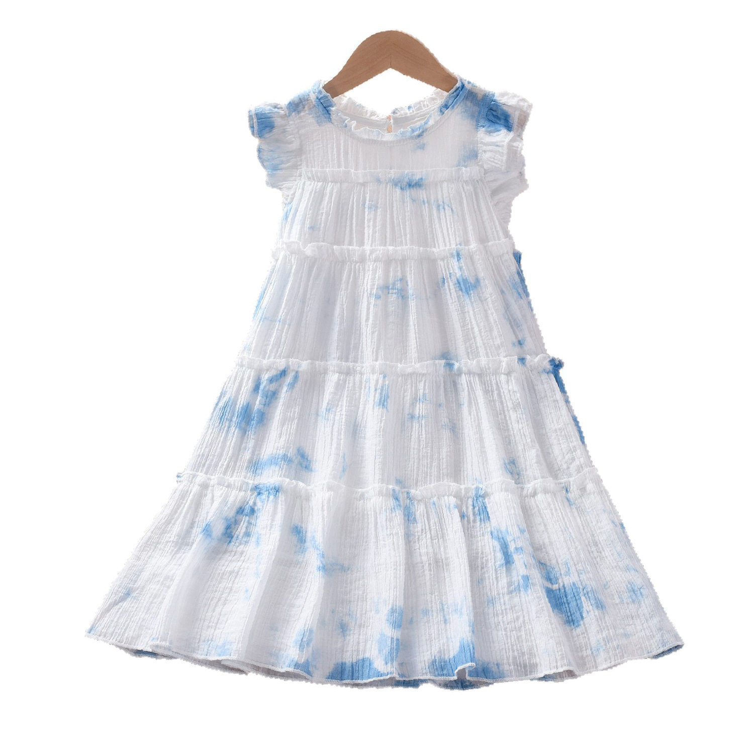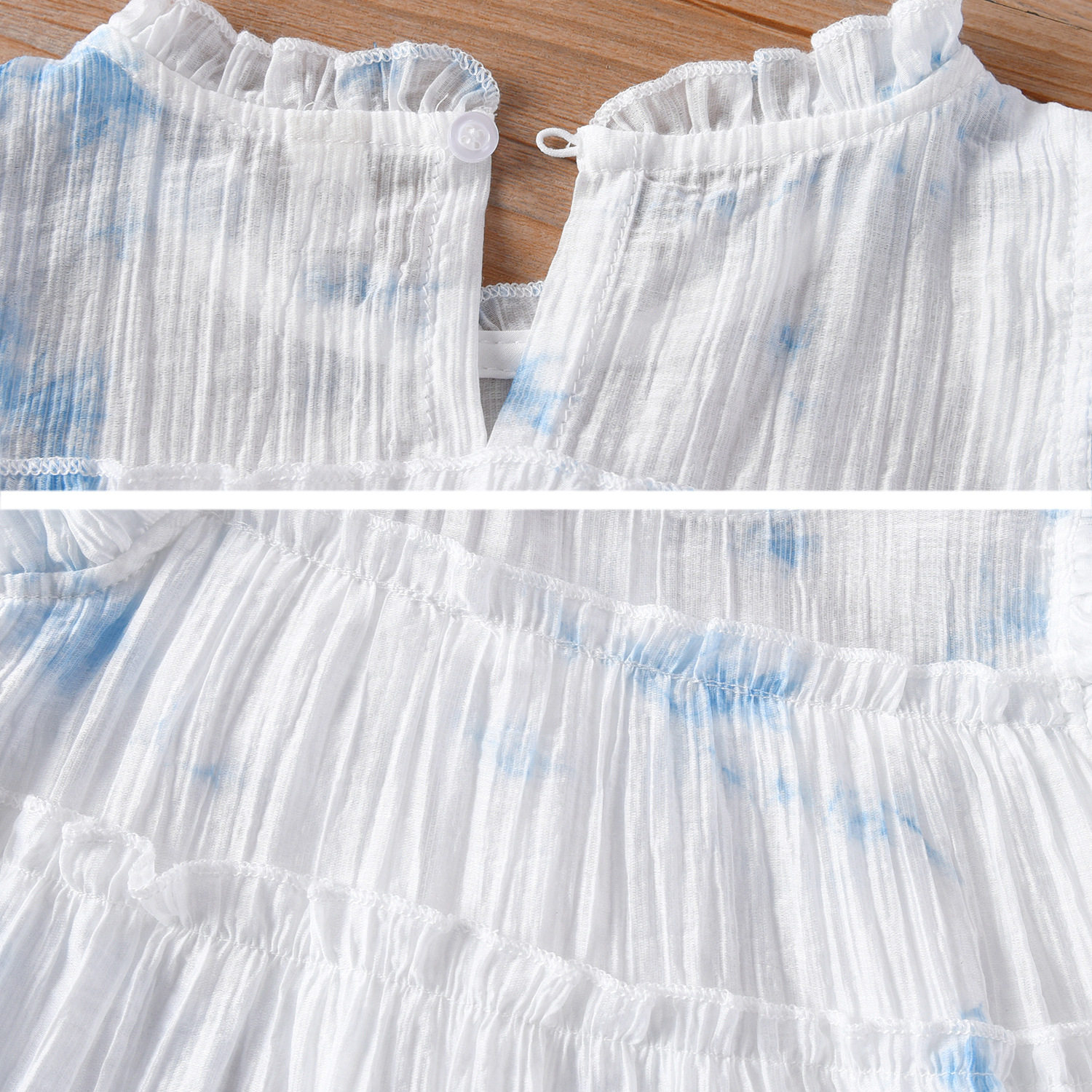 云南手工扎染母女亲子装法式小飞袖公主裙新女童甜美木耳边连衣裙