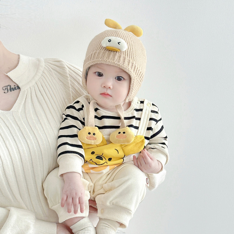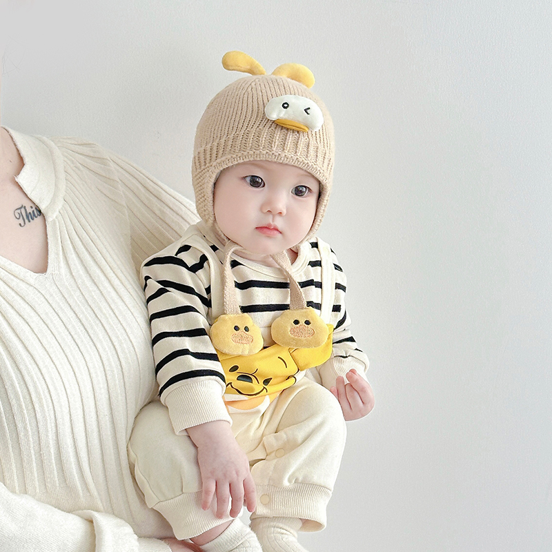 婴儿帽子秋冬季超萌卡通小鸭护耳帽男童女宝宝冬天加厚保暖毛线帽