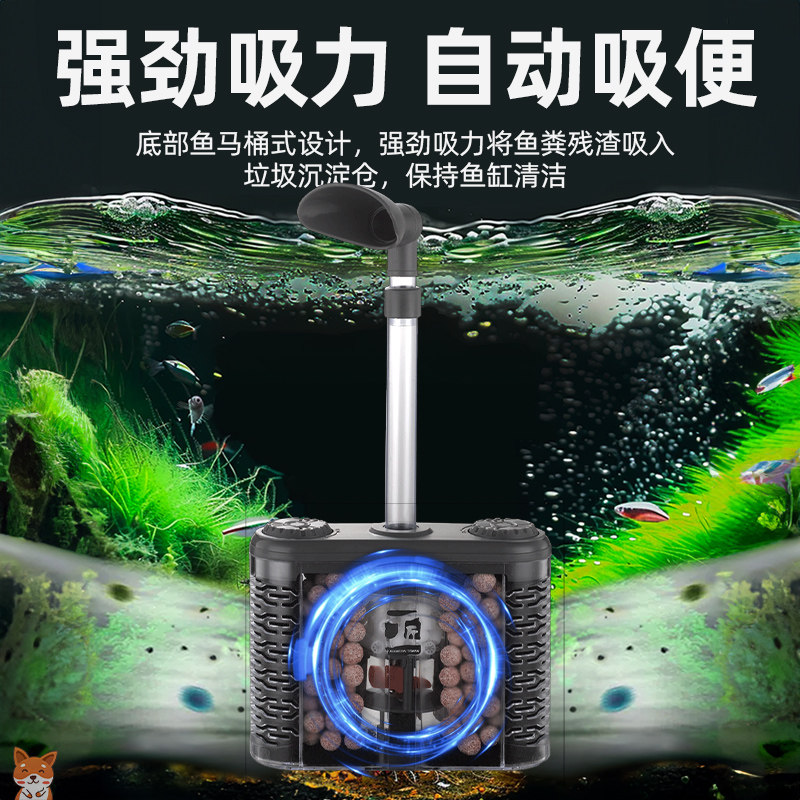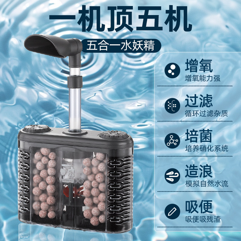 鱼缸过滤器水妖精制氧过滤一体机小鱼缸循环水泵小型六合一内置