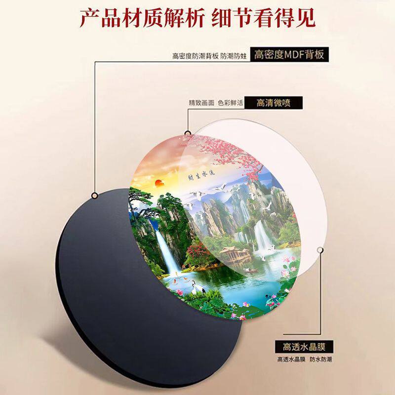 国风招财流水生财山水圆盘相框迎福纳运鸿运当头客厅书房桌面摆件