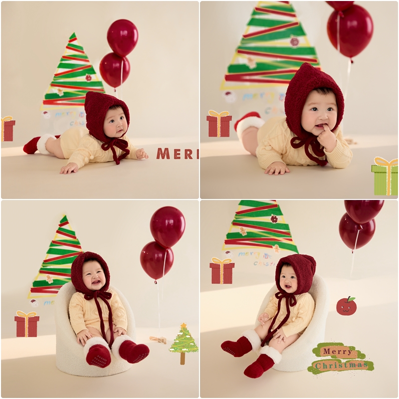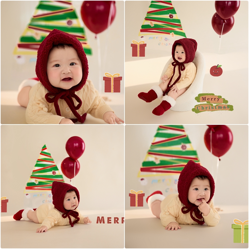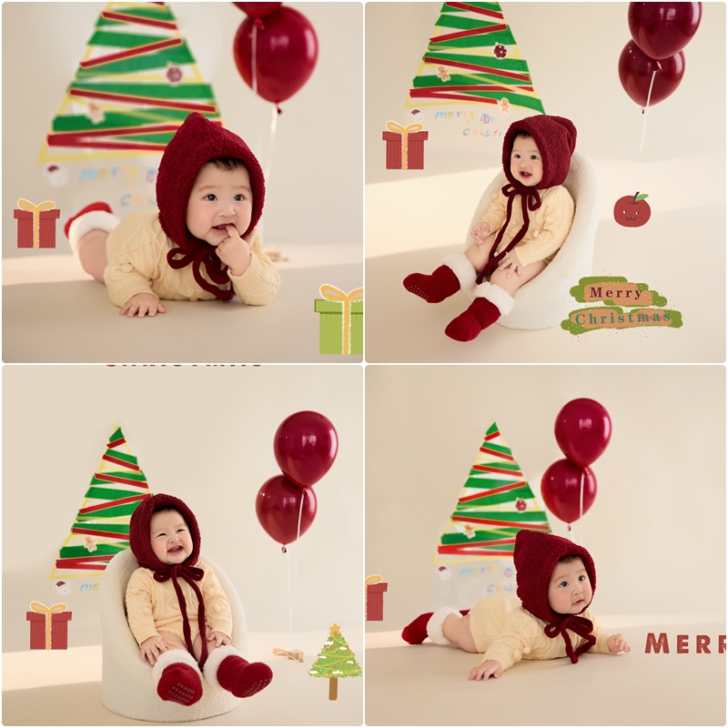 百天周岁宝宝圣诞节摄影拍照主题服装儿童写影楼真艺术照节日场景