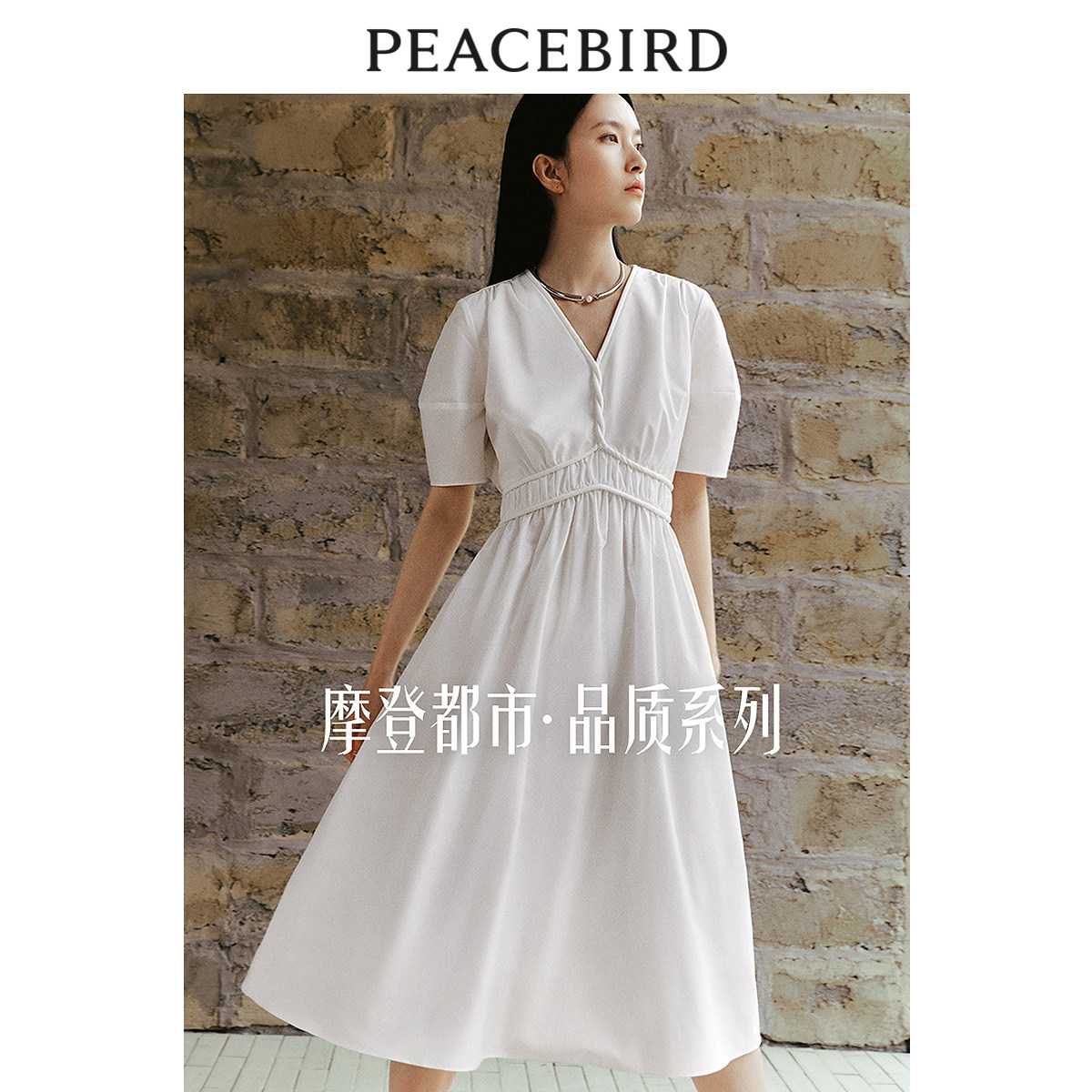 太平鸟通勤气质V领连衣裙