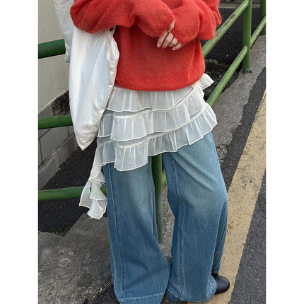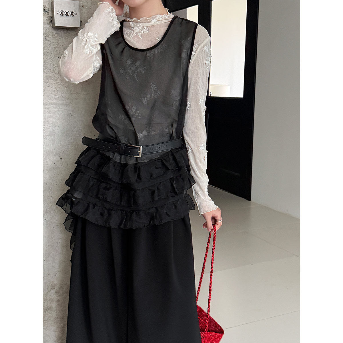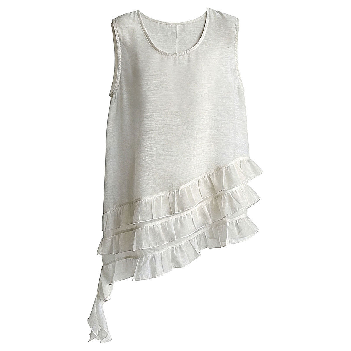 鹿西法式温柔风不规则荷叶边无袖上衣女26早春叠穿背心裙89025