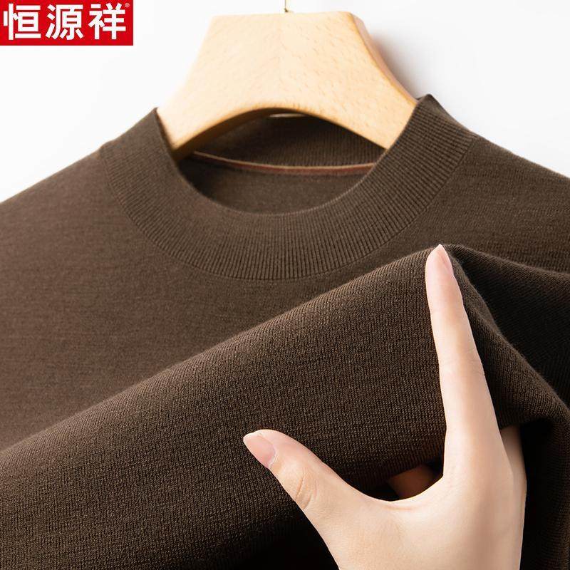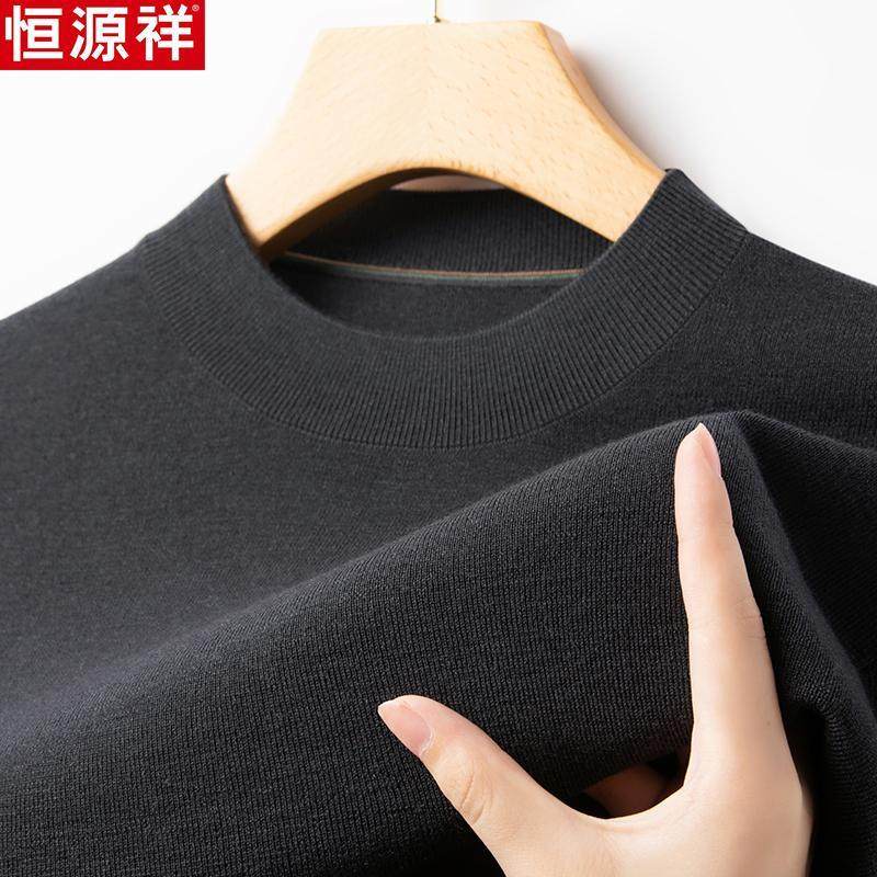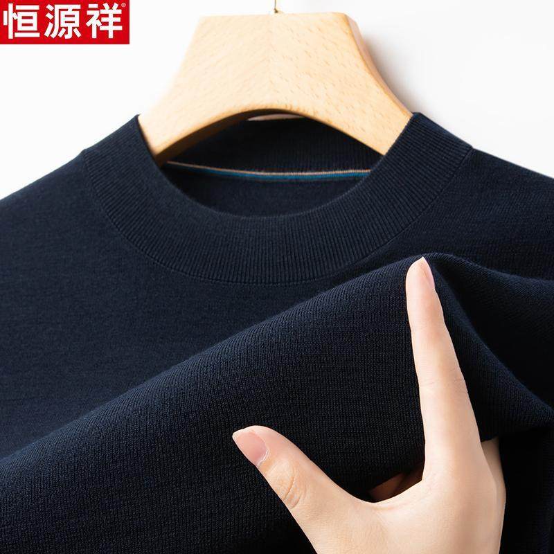 恒源祥男士正品100%精纺纯羊毛衫冬季加厚可机洗半高领针织毛衣男