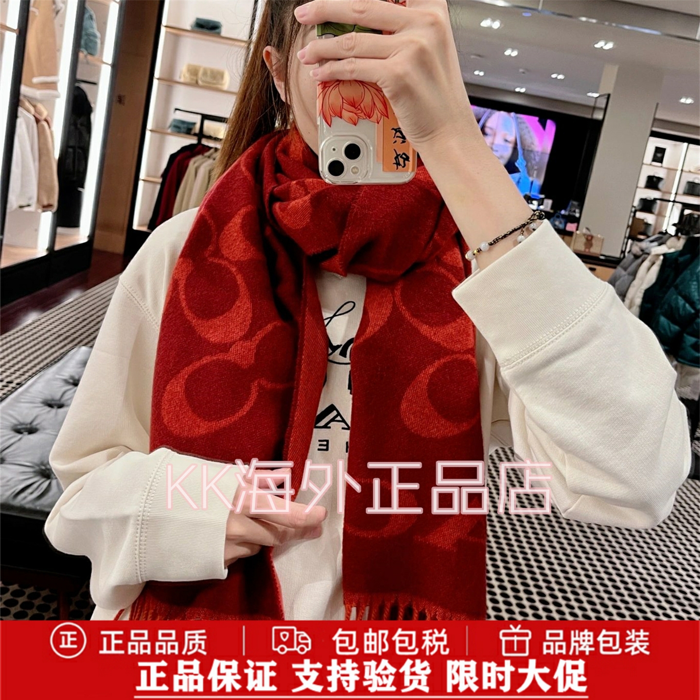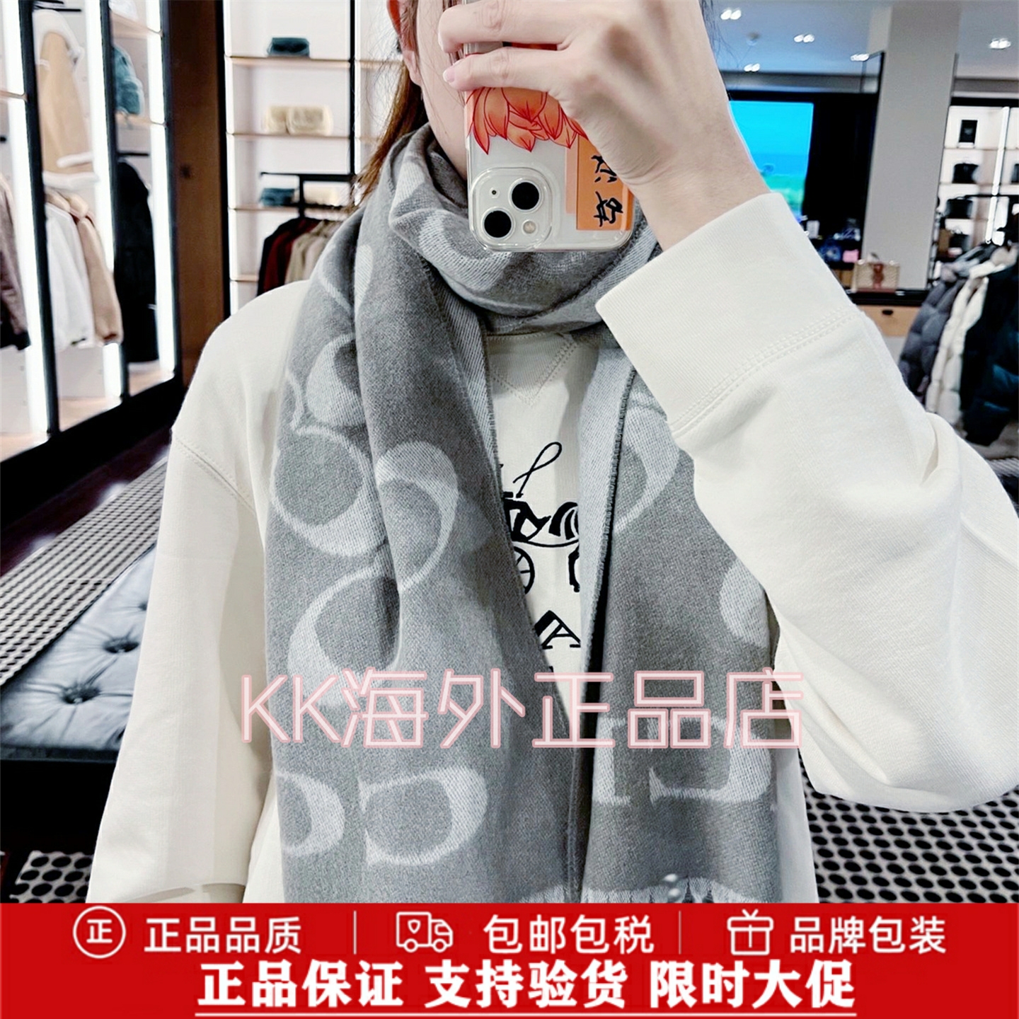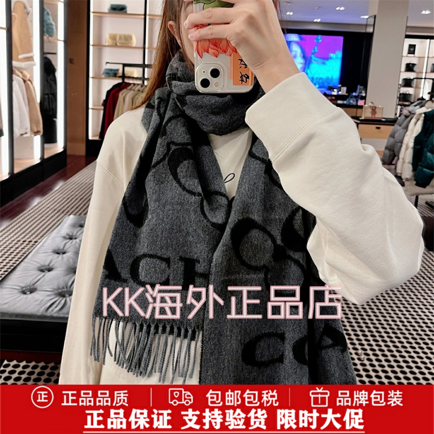 正品COACH蔻驰围巾男女经典双面羊毛羊绒大logo秋冬保暖披肩围脖