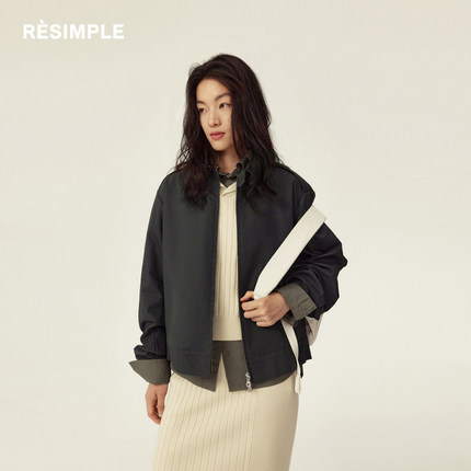RESIMPLE简单点夹克女方领短款宽松潮牌外套拉链百搭上衣0972女装