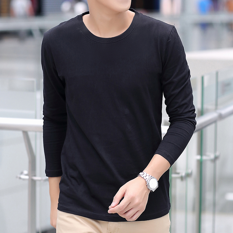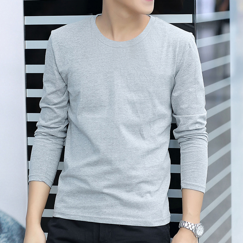 秋季新款纯棉纯色2025白色体恤男士长袖T恤潮流上衣服内搭打底衫