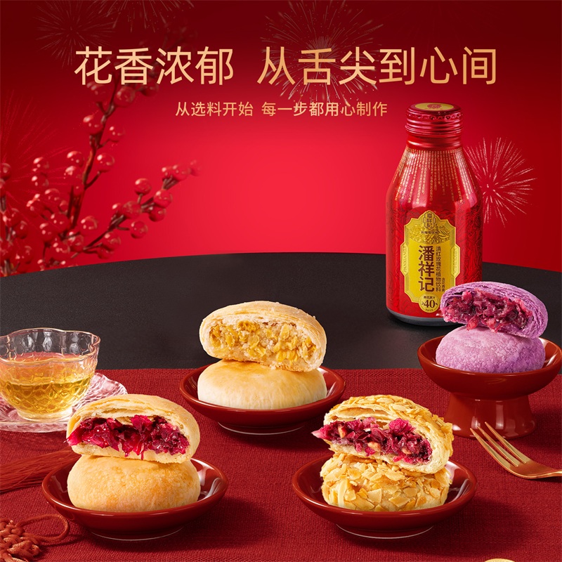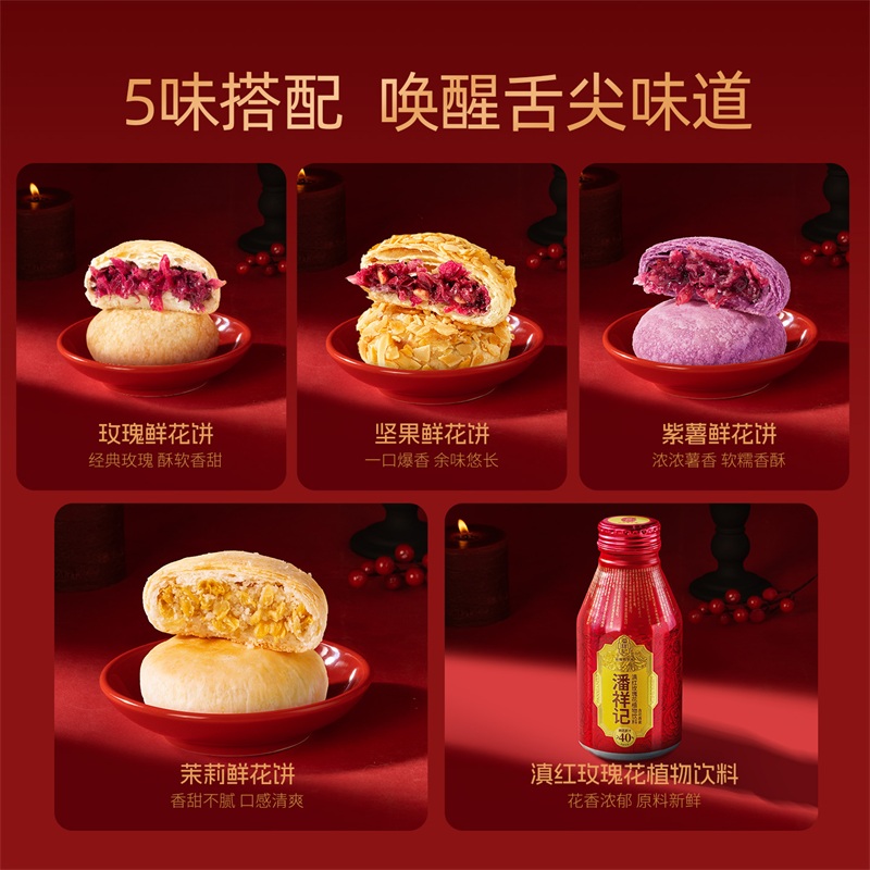 潘祥记鲜花饼礼盒1000g鲜花饼+660ml玫瑰饮云南特产零食糕点送礼