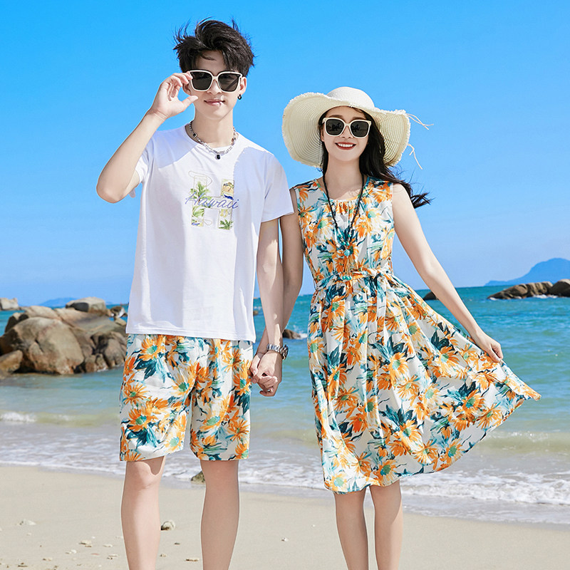 沙滩裙女小个子情侣装夏装套装海南三亚泰国旅游穿搭拍照衣服