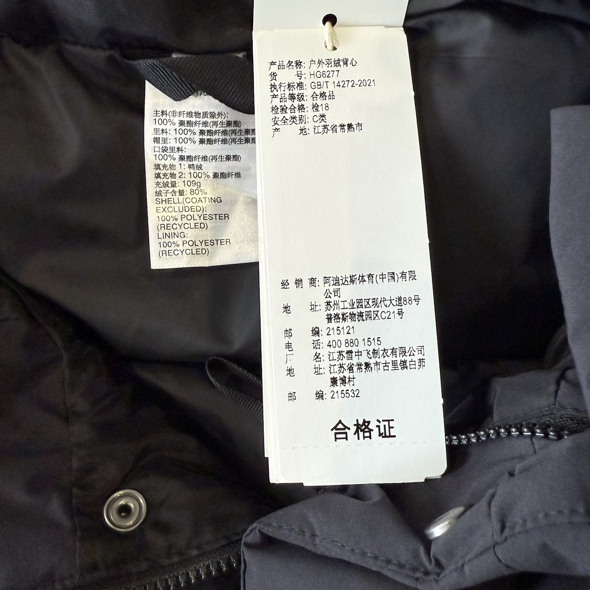 潮包背 现货 Adidas 阿迪达斯男子连帽保暖羽绒马甲 背心 HG6277