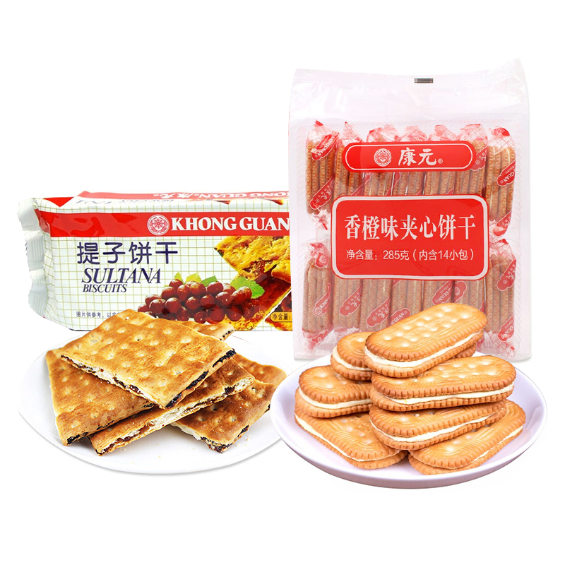 康元提子饼干200g/袋+香橙夹心饼干285g袋零食下午茶出游