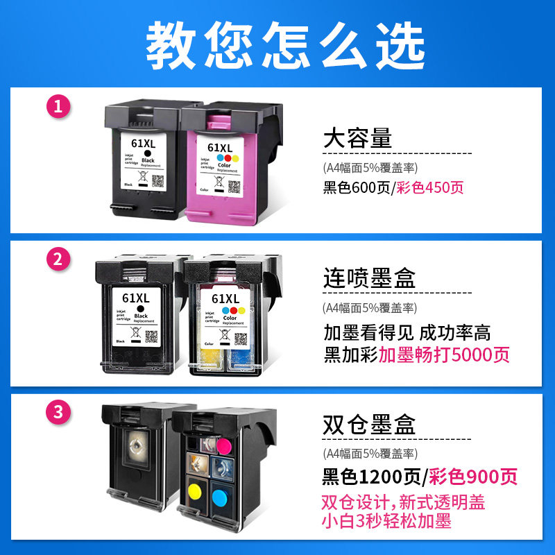 适用惠普61xl墨盒HP1000打印机