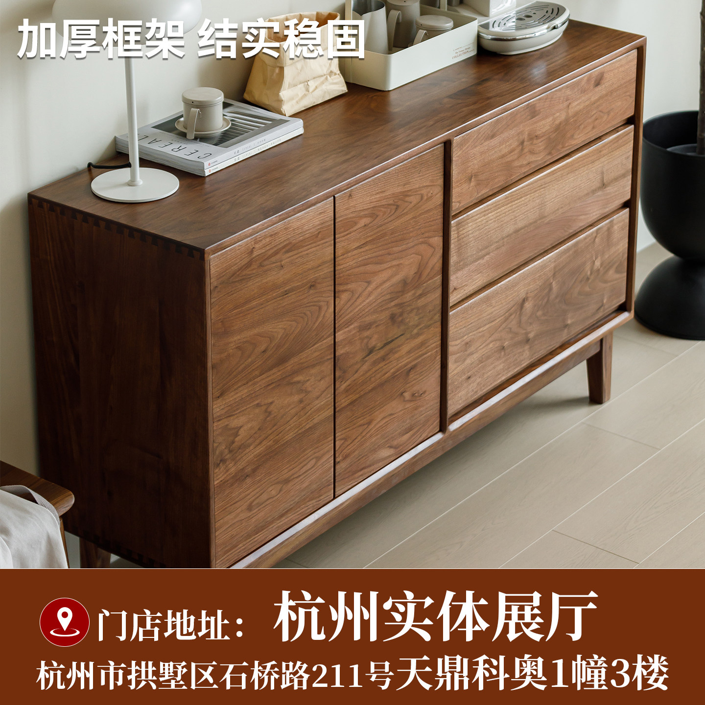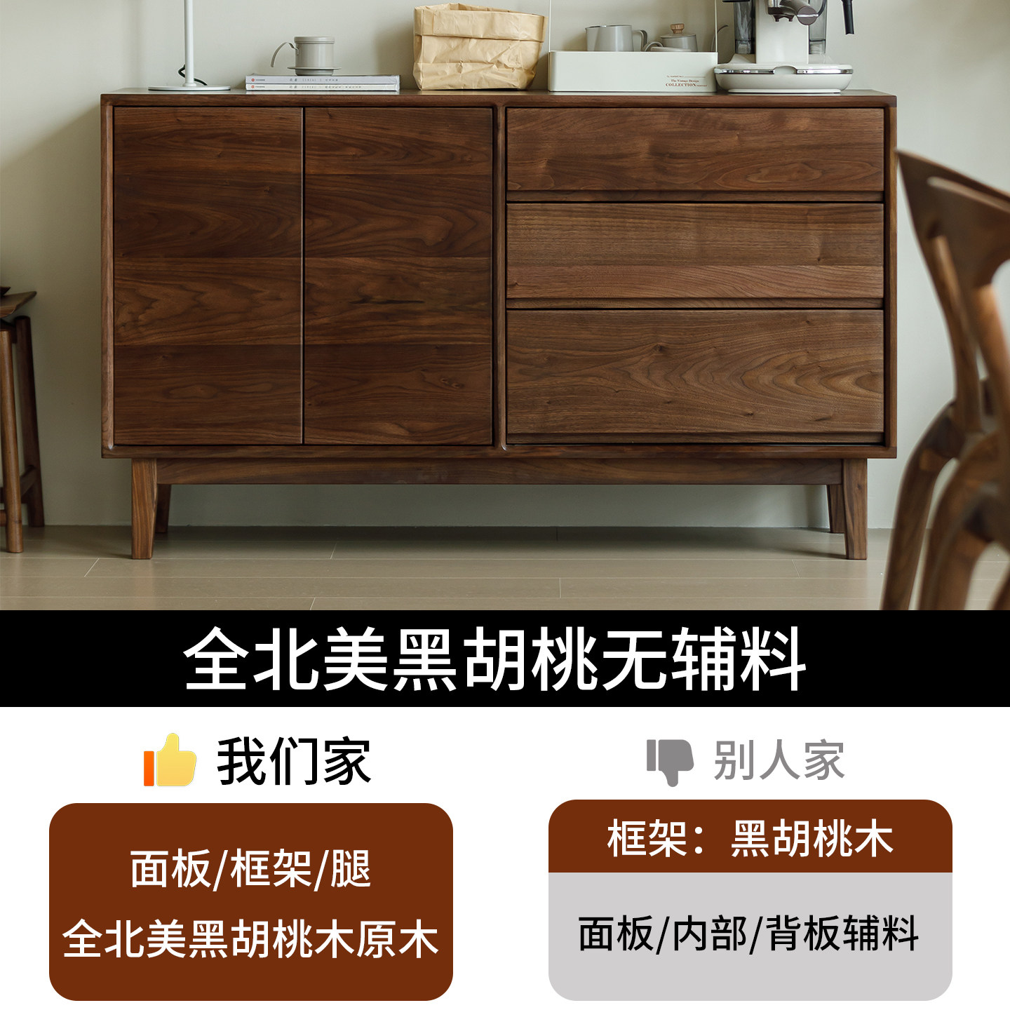 北美黑胡桃木实木边柜储物格收纳柜酒柜餐边柜电视柜全实木北欧