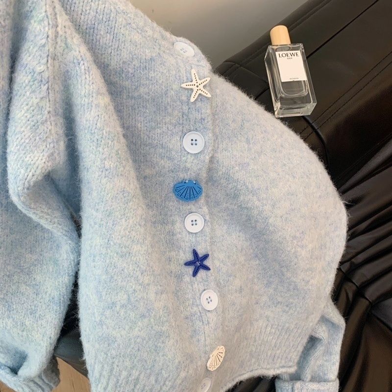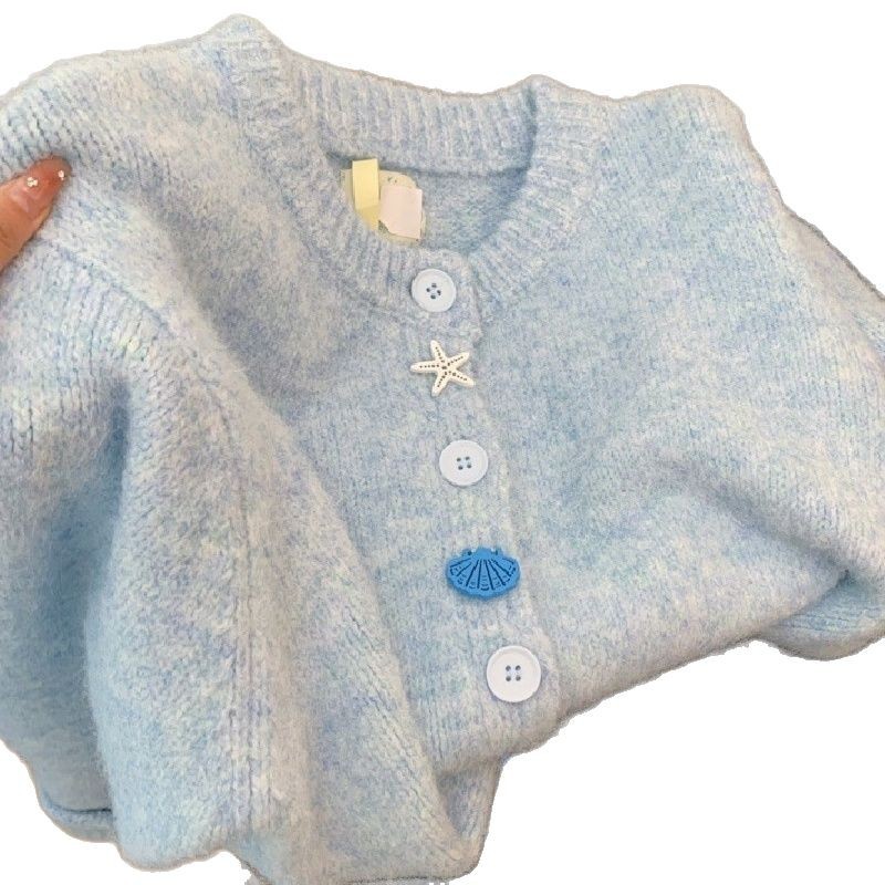 奶蓝色温柔风软糯感针织开衫春秋季女奶fufu慵懒减龄毛衣