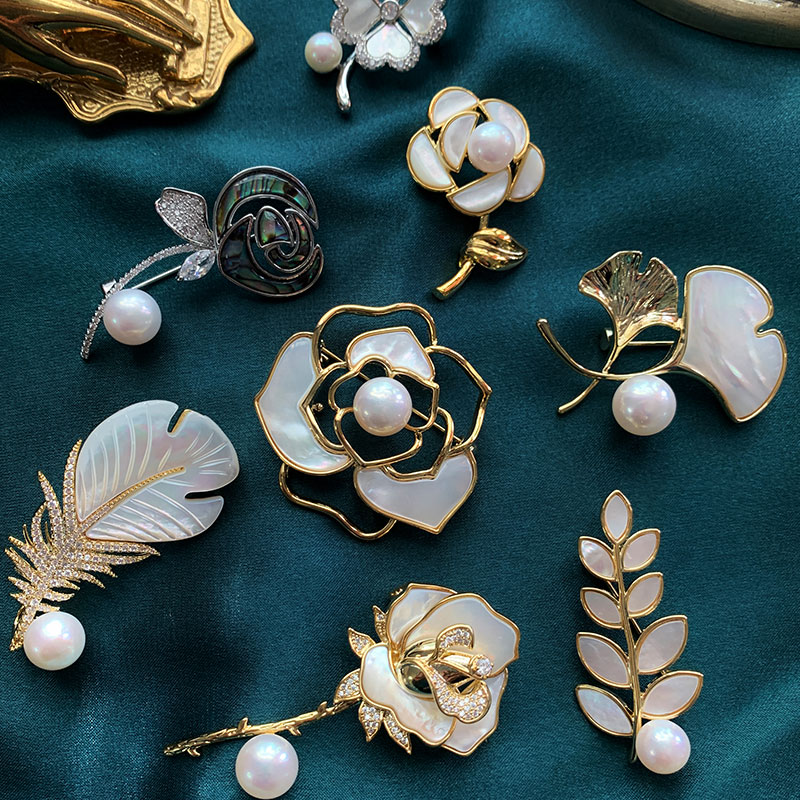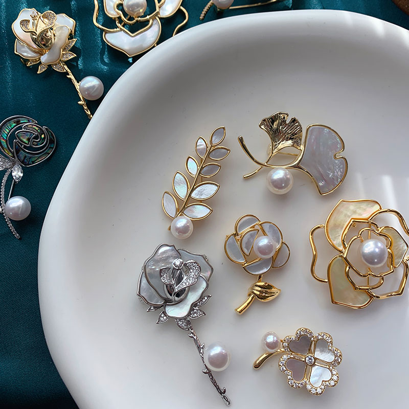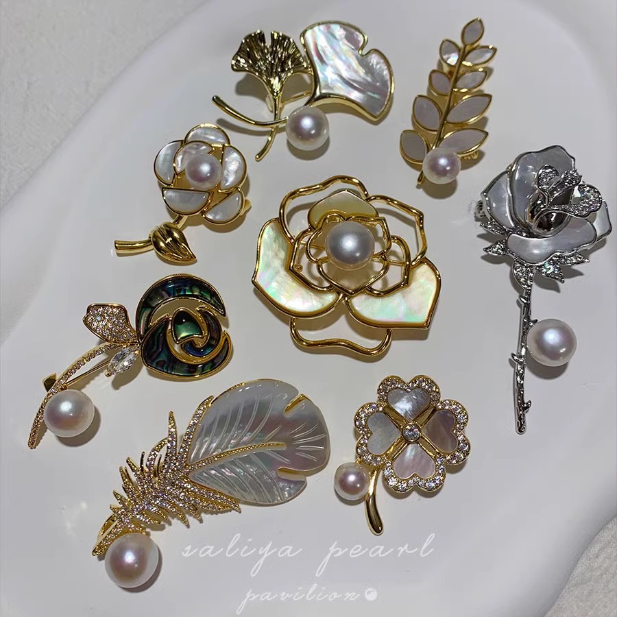 《贝壳屋》天然珍珠胸针女蝴蝶山茶花唯美胸花大衣配饰母贝镶嵌