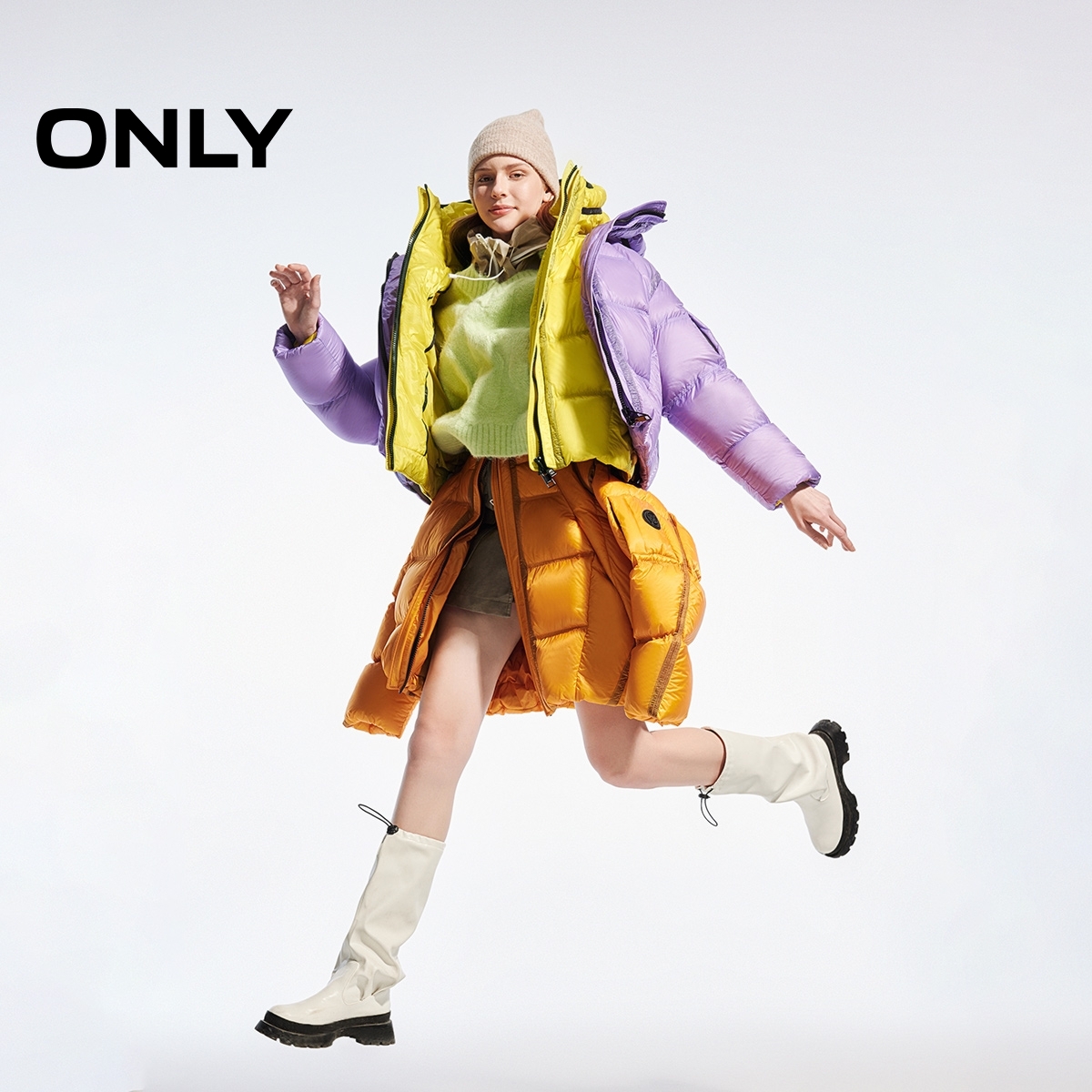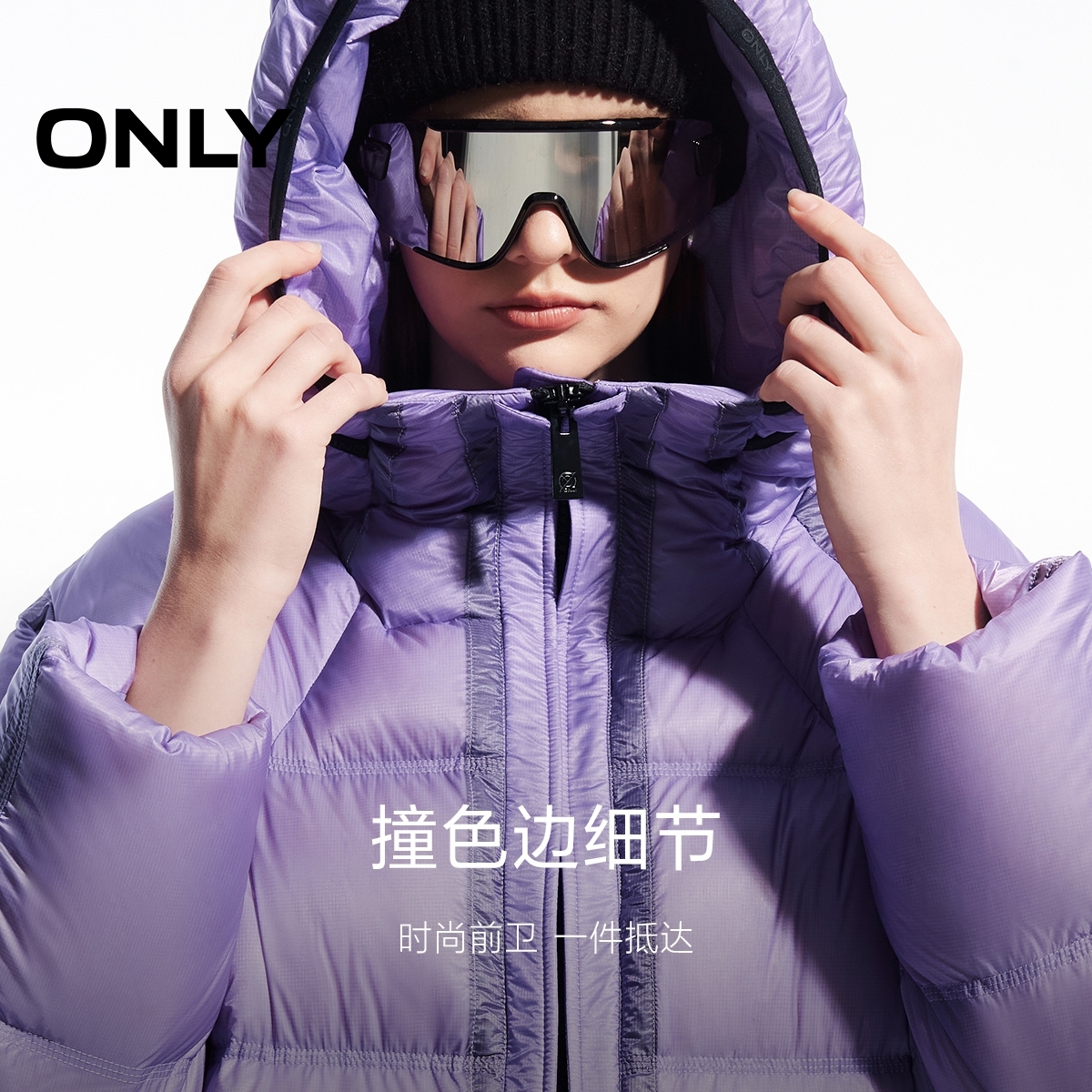 ONLY冬季90白鸭绒撞色宽松连帽短款羽绒服女|124423064