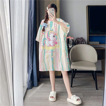 夏季加大码纯棉睡裙女200斤短袖卡通可爱宽松薄款胖mm孕妇家居服