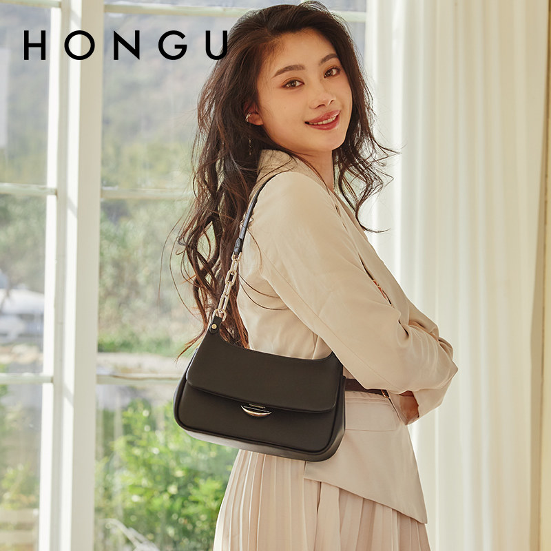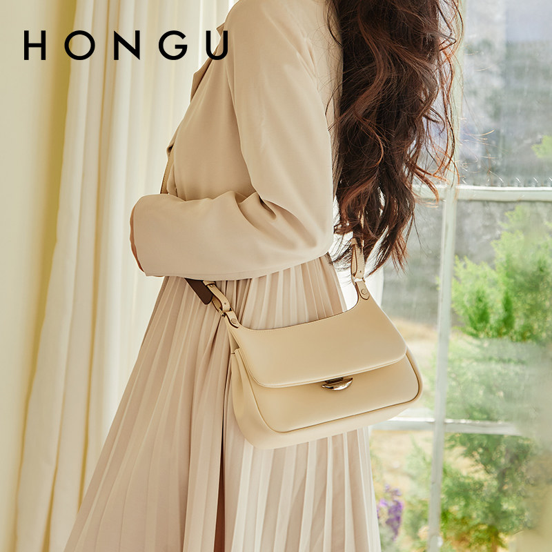 红谷包包女2025新款夏季外出牛皮单肩腋下包时尚流行斜挎包女士包