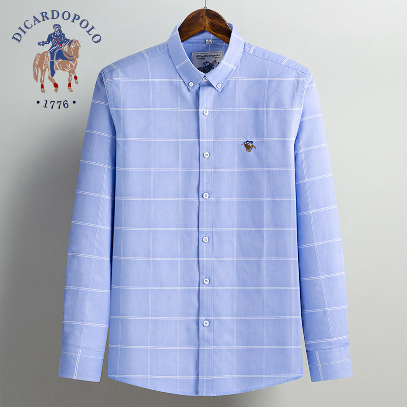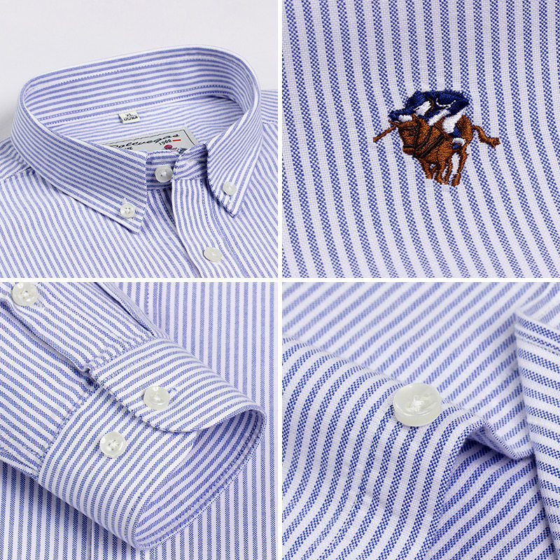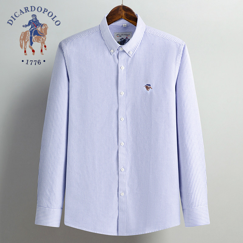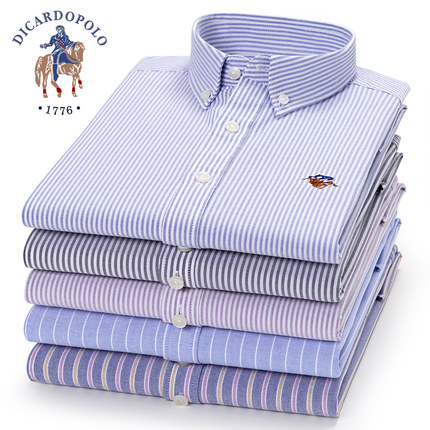 保罗春秋男纯棉大码宽松衬衫商务休闲长袖纯色条纹衬衣中年牛津纺