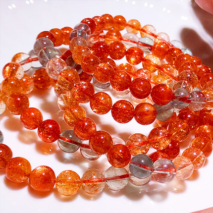 天然阿鲁沙手串多彩冰种金太阳草莓晶绿柱石日光宝石男女水晶手链