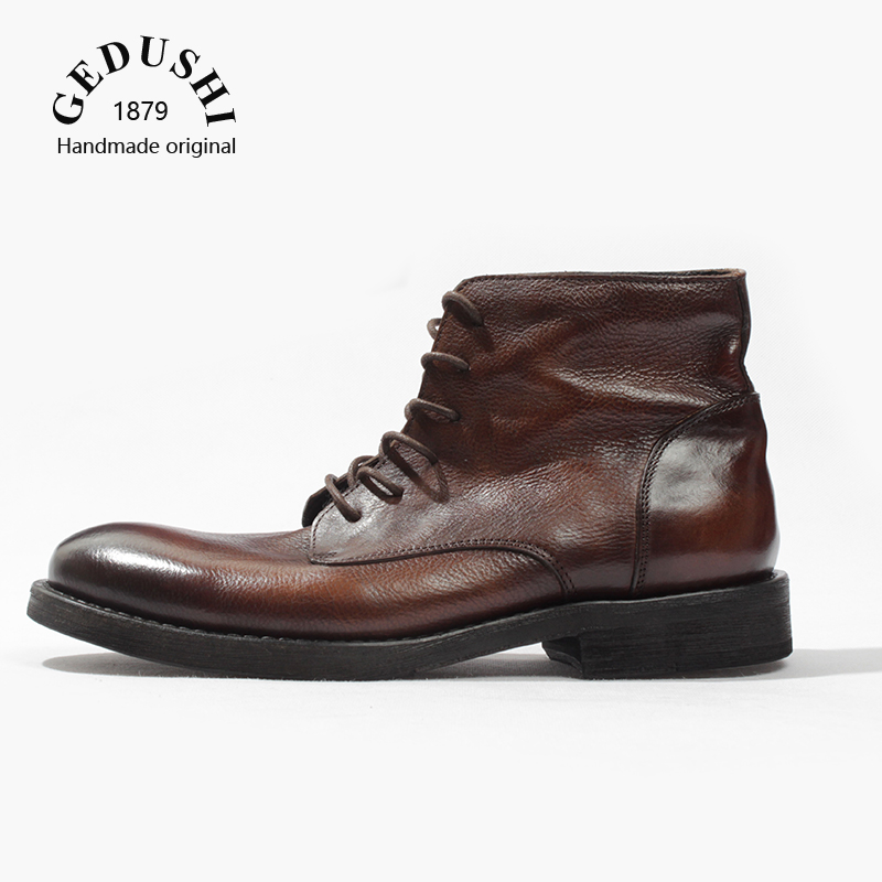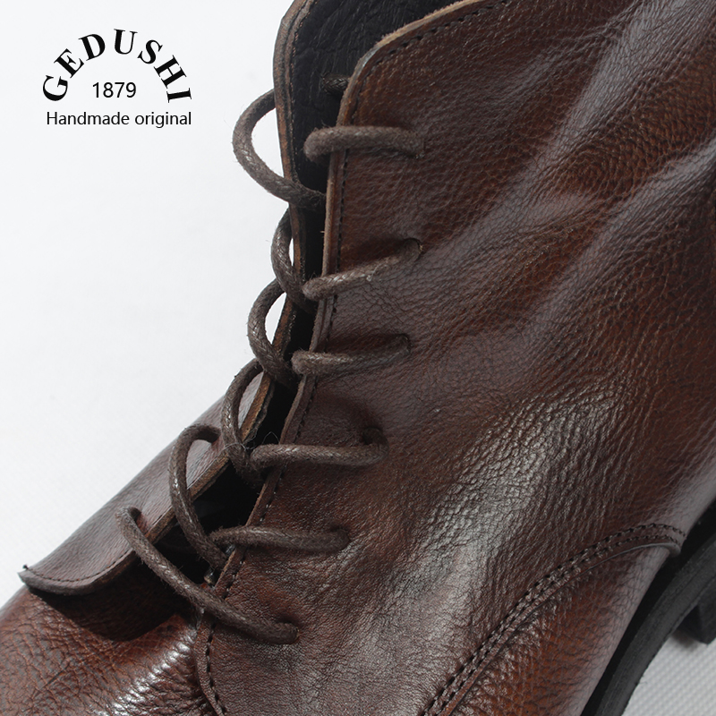 男高帮商务复古系带透气风牛靴子