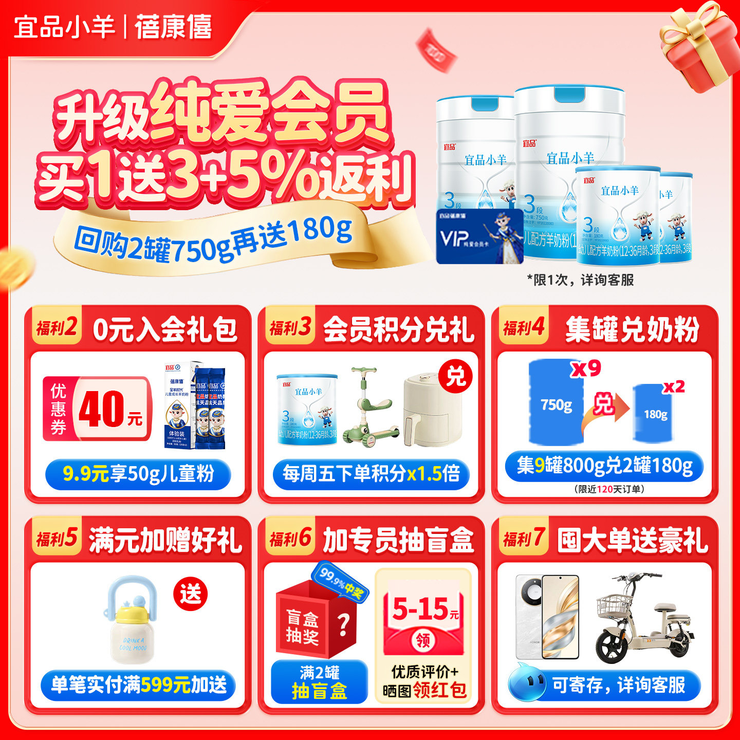 蓓康僖宜品小羊羊奶粉1段180g*3罐婴幼儿配方0-6月宝宝试喝装正品