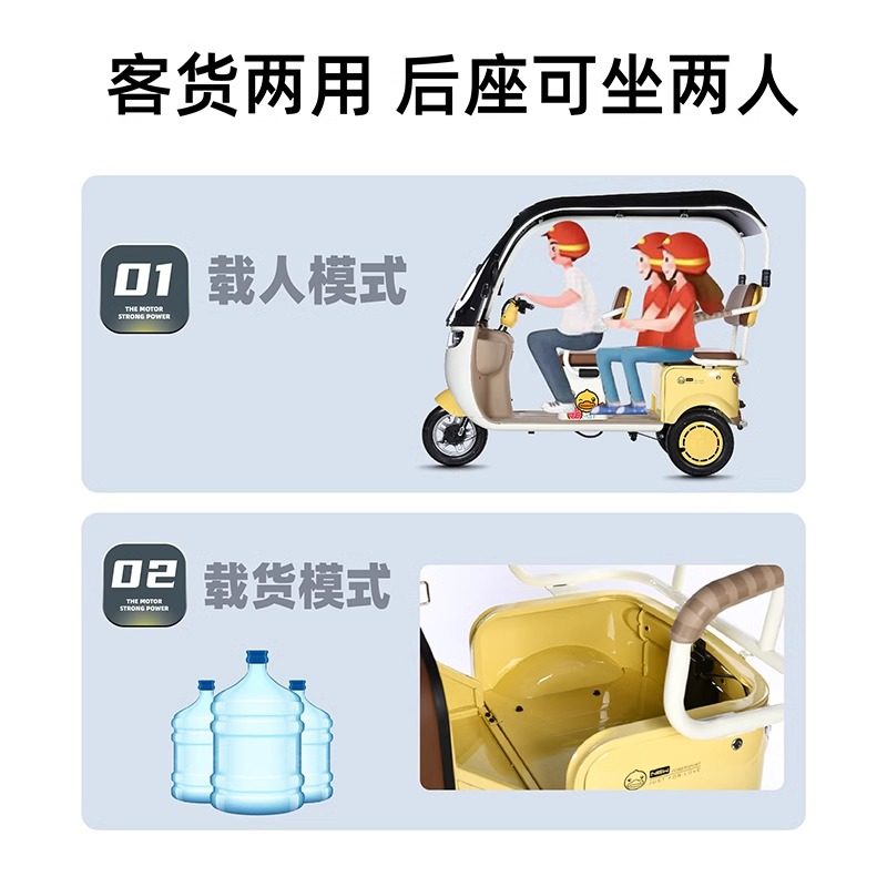 电动三轮车家用小型女士电动车老年休闲车老人三轮电瓶车新款带棚