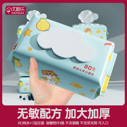 优柚乐婴儿湿巾纸新生手口专用屁宝宝幼儿童80抽5包家庭实惠大包