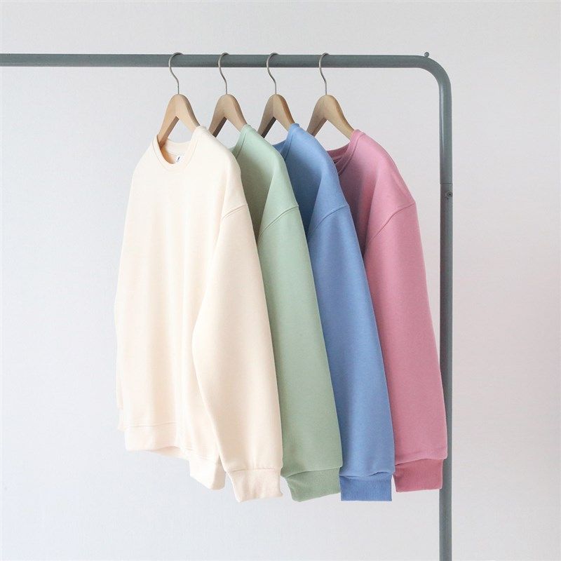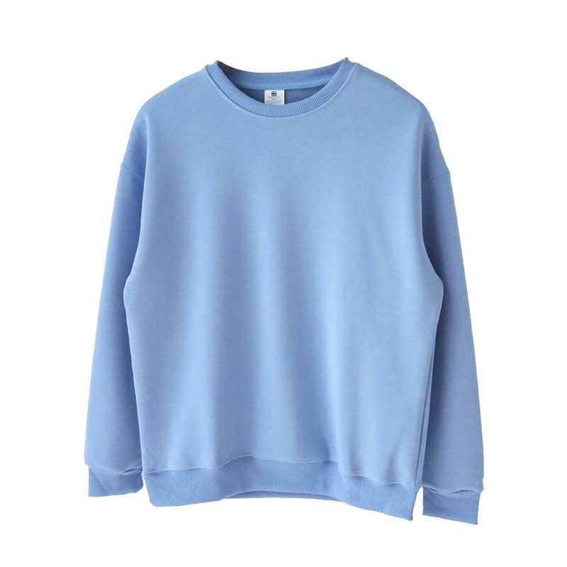 秋冬季浅绿色浅蓝色银狐绒加绒加厚套头圆领落肩卫衣男女宽松流行