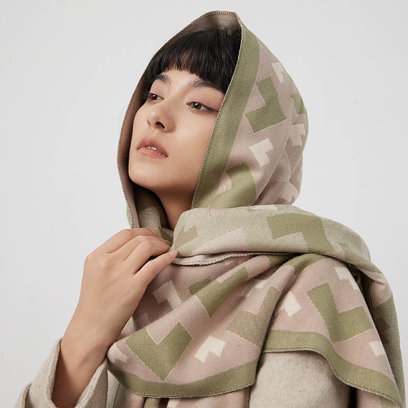 夏季新款几何仿羊绒围巾女披肩斗篷时尚民族风开叉保暖流苏毯子