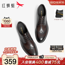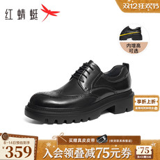 红蜻蜓男士皮鞋结婚布洛克真皮商务大码棕色男鞋内增高新郎婚鞋