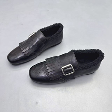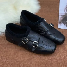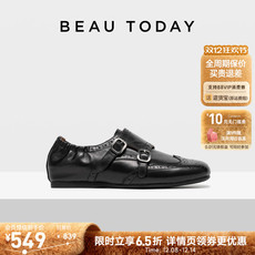 BeauToday乐福鞋女2025新款冬英伦风小皮鞋老钱风孟克鞋布洛克鞋