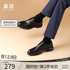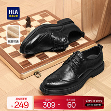 海澜之家男鞋秋冬季正装商务真皮布洛克内增高皮鞋男款加绒德比鞋