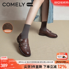 英伦流苏小皮鞋女复古布洛克雕花秋冬新款加绒平底休闲乐福鞋单鞋