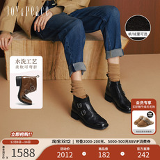 BeauToday切尔西靴女布洛克真皮短靴子女BT美拉德靴子烟筒靴女款