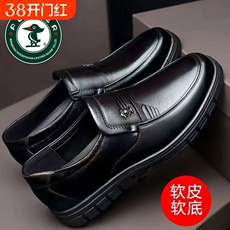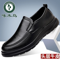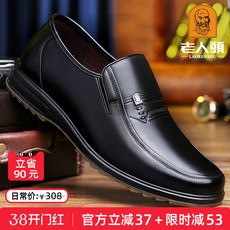 老人头男鞋春季新款牛皮商务休闲男士皮鞋真皮软底透气中年爸爸鞋