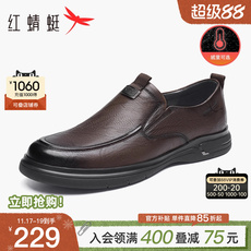 红蜻蜓男鞋真皮中老年休闲商务皮鞋正品高档加绒软底一脚蹬爸爸鞋