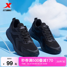 特步跑步鞋男夏季新款黑色运动鞋轻便软底爸爸减震透气网面休闲鞋