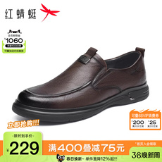 红蜻蜓皮鞋男士休闲公商务一脚蹬真皮舒适软底新款中老年爸爸鞋子