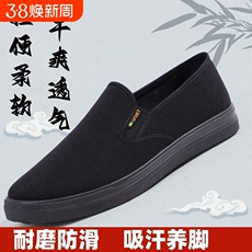 老北京布鞋男透气防滑耐磨工作干活中老年爸爸鞋帆布鞋开车一脚蹬