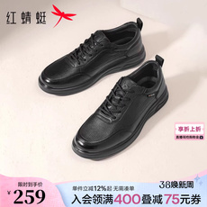 红蜻蜓休闲皮鞋春季新款男鞋商务真皮运动板鞋休闲鞋中年爸爸鞋子