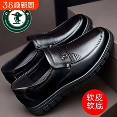 蜻蜓牌正品男士新款皮鞋商务休闲真皮透气防滑软底中老年爸爸鞋子