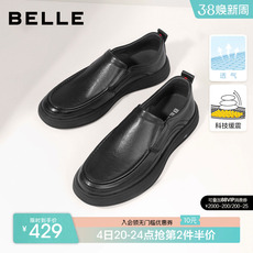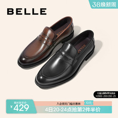 百丽男鞋休闲商务皮鞋男秋季乐福鞋套脚一脚蹬软底爸爸鞋A0632AM2