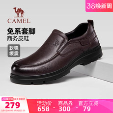 骆驼男鞋2026春季新款柔软牛皮套脚爸爸鞋百搭经典商务休闲皮鞋男